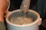 ある程度水分がとれた米と麦芽はボウルにとっておきます。