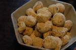 ・きなこぼーろは、白ゴマがたっぷり入ったクッキーにきなこをまぶしたもの。