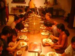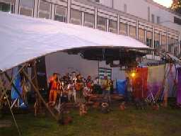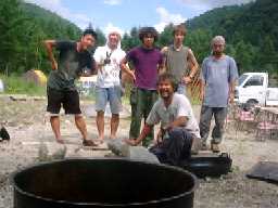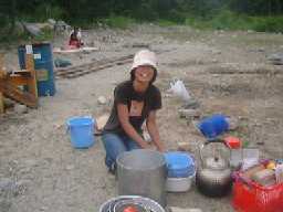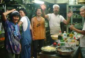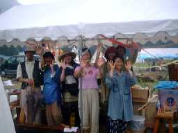 スタッフや講師 ミュージシャンの食事300人分をまかなっている炊事班 目立たない存在だけれども底辺で祭を支えています。 | |