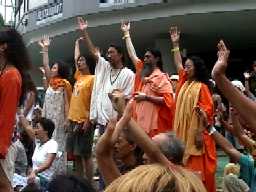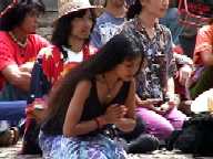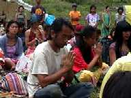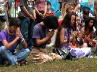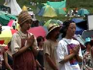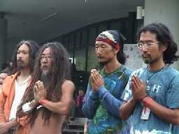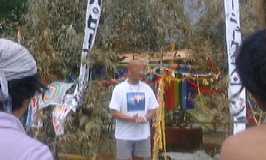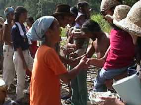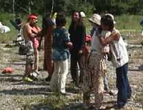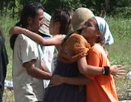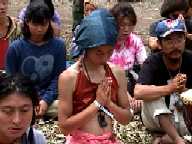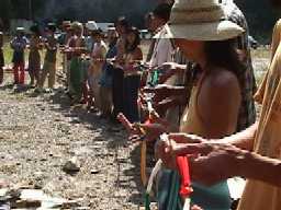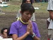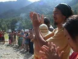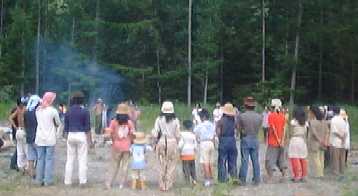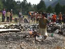 虹の村の撤収作業が一段落したところで虹の村のクロージングセレモニーが行われました。ビッグマウンテンの人達が中心となりインデアンの儀式にのっとり祈りの時を持ちました。全員で平和の火にハーブとして尊ばれているたばこの葉を祈りを込めて投げ入れ願いを込めて祈りました。