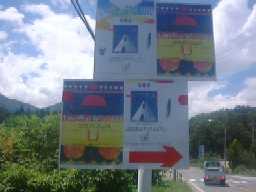 いのちの祭りの会場設営が本格的になってきました。現地入りは150人ほどになりました。道の要所には表示も出されました。虹の村の様子をお伝えします。現在のスタッフは30人で安全祈願をした後作業に取り組みました。