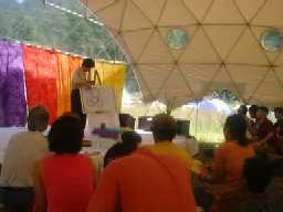虹の村では村民のパフォーマンスがレインボードームで行われました。芸達者な人達が集ったものだとつくづく感じました。朝からいっぱいのプログラムに虹の村はピースフルな時間が流れています。
