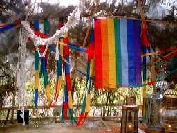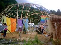 ![]() 虹の村のピースドーム沢山の人の願いが五色の布に書き込まれています。虹の村にて |