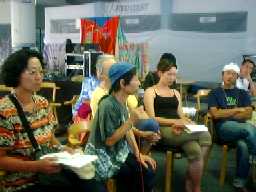 4日2時過ぎから、シンポドームにて「平和と人権」と題した、いのちのフォーラムが開催されました。無実の罪で拘留された経験をもつ安田好弘弁護士、人権110番を主宰する千代丸健二さん、精神障害者のグループワークを立ちあげられた東谷幸政さん、アマンの会主宰で、野宿生活者の支援活動をされている山田征さんからのお話の後、質疑応答が行われました。スタンスも方法も様々な4人のパネラーの方々ですが、その共通項は、「他人のことを、自分のことと同じように感じている」という点です。すべての命のつながりを、地球規模で感じることが求められてきています。「日本の日常生活の贅沢さが、海外の貧しい国々に大きな影響を及ぼしていることに気づきたいですね。野宿生活者の方々と接することで、豊かさの意味を考え直すことができて、私は本当に感謝しています。本当に必要なものって、何なんでしょう。多くのしがらみから離れて、自由に力強く生きている彼らの姿は、今の日本人が失ってしまった大切なことを見せてくれているような気がしています。いろんな問題がありますが、まずは、今から、日常生活の中で自分のできることを実行していきましょう。自分の生活を自分で選択しましょう」。山田さんの最後の言葉が、静かに響いていました。