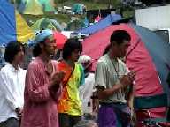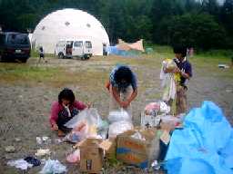祭も後半になりました。祭の運営は沢山の人に支えられて運営がされています。スキー場の関係者にお聞きしたところ 思った以上に混乱もなくマナーがいいのに驚いていました。キャンプインの流しもいつもきれいです。これはスタッフがいつも気にして片づけている為 参加者もそれに呼応してきれいに使っています。空き缶もアルミ缶とに分類され処理されています。自分の家にゴミを捨てる人はいません。愛する地域が広がれば町にも 世界にも地球にも宇宙にもゴミを捨てなくなります。会場内がとてもきれいなのに参加者の会場を愛する気持ちを感じます。夜になると会場のあちこちに空き缶で作られた廃油のランプが灯され幻想的な雰囲気を感じさせます。この火がまた平和の火で灯されていることを思うと二重の喜びを感じます。