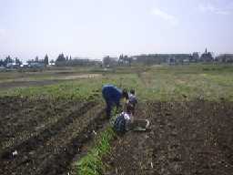 今日は菜もの類の蒔き方とネギの苗床作り ニンニクの植え方の実習です。
