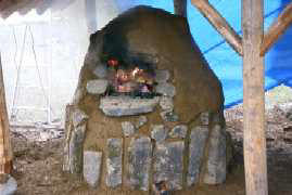 石窯の制作風景があります。 |